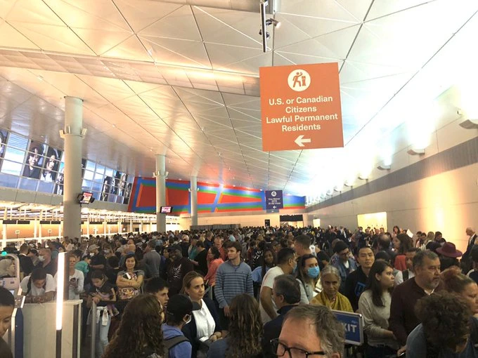Tại sân bay quốc tế John F.Kennedy (JFK) ở New York, hành khách cũng đối diện với tình trạng xếp hàng dài chờ kiểm tra y tế.