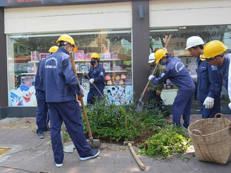 Lực lượng chức năng TP Vũng Tàu ra quân kiểm tra, xử lý việc lấn chiếm lòng đường, vỉa hè. Ảnh: KL