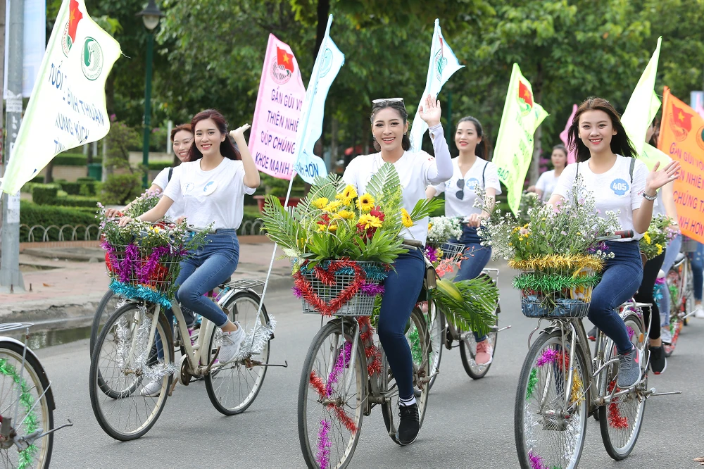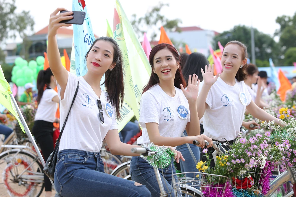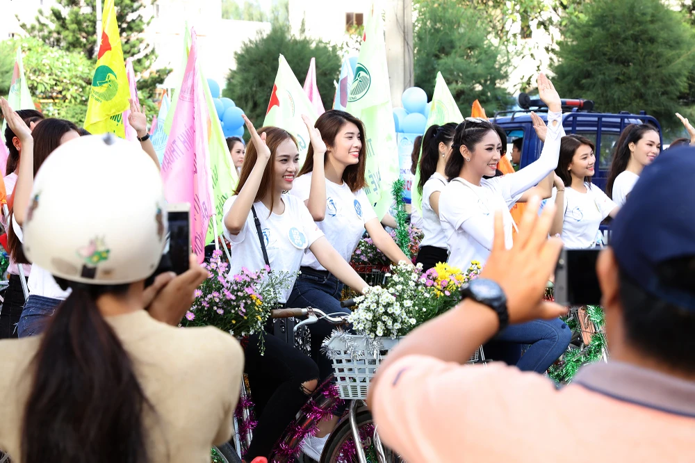 Trong lễ phát động Tuần lễ Du lịch Xanh tại TP Phan Thiết, top 33 thí sinh Hoa hậu Đại Dương 2017 đã có màn diễu hành bằng xe đạp kêu gọi chung tay bảo vệ môi trường.