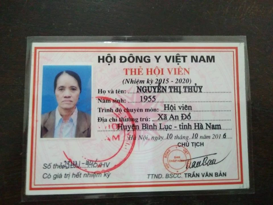 Thẻ hội viên Hội đông Y Việt Nam của bà Thủy.