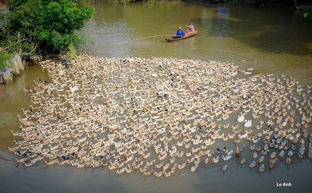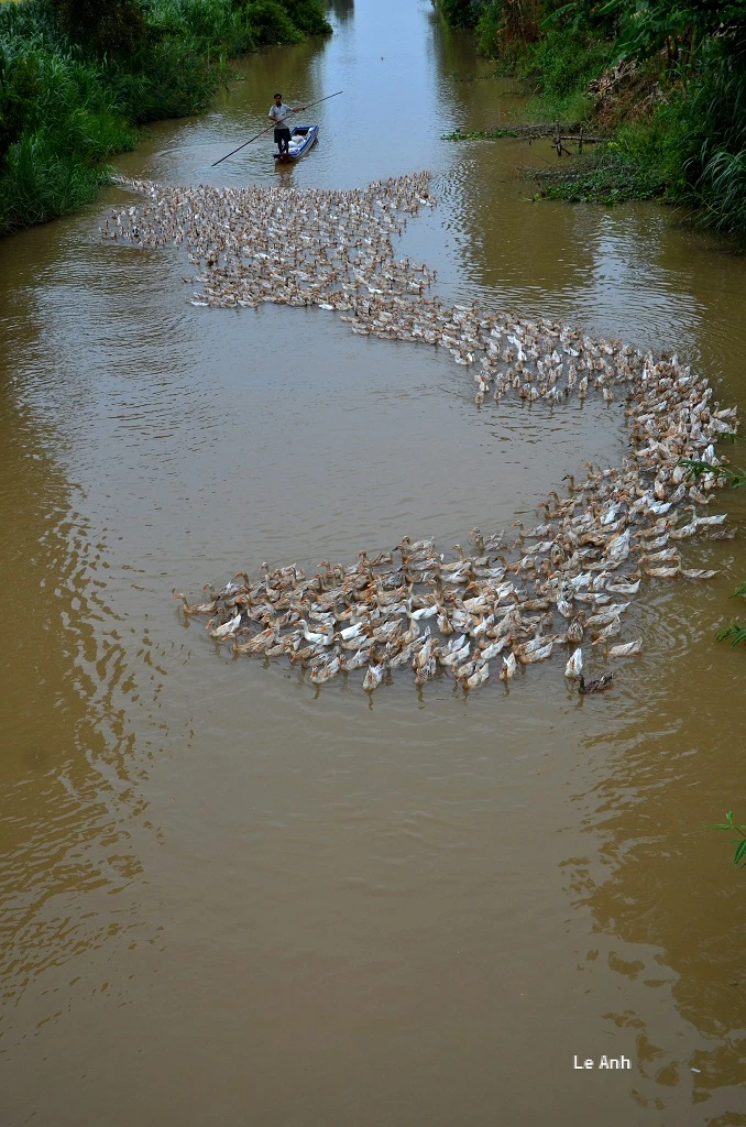 Một trong những bức ảnh mà khi nhắc lại, vừa khiến thầy “sướng” vì vô tình bắt được khoảnh khắc nhưng cũng “hành” thầy mệt mỏi với những lời bình luận không hay là tấm ảnh đàn vịt bơi trên sông, vô tình tạo thành hình chữ S như bản đồ Việt Nam được chụp vào tháng 12-2016, tại khu sinh thái Gáo Giồng, huyện Cao Lãnh, Đồng Tháp.