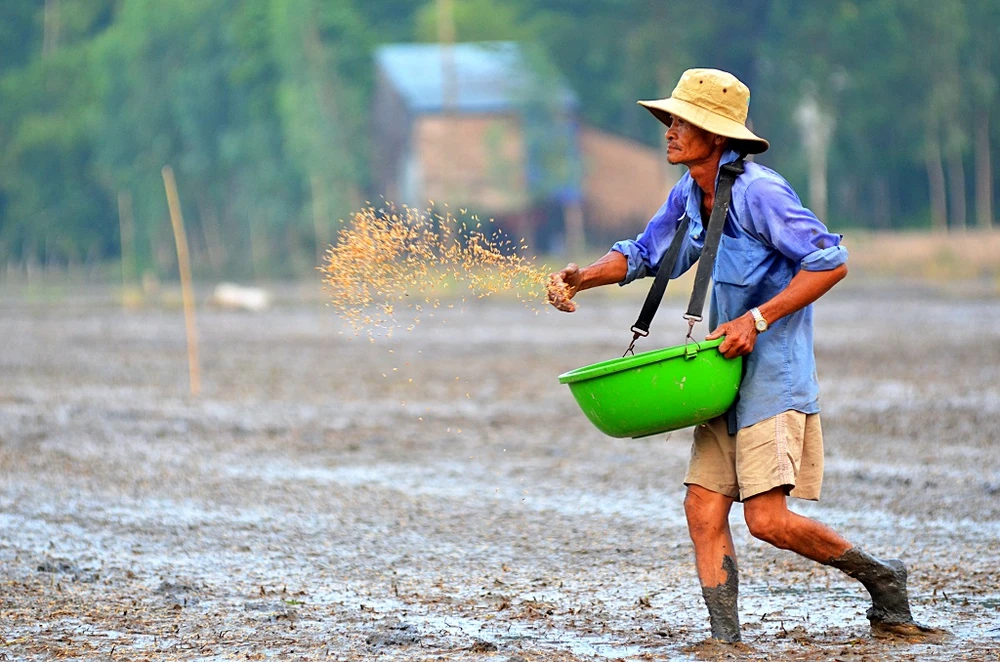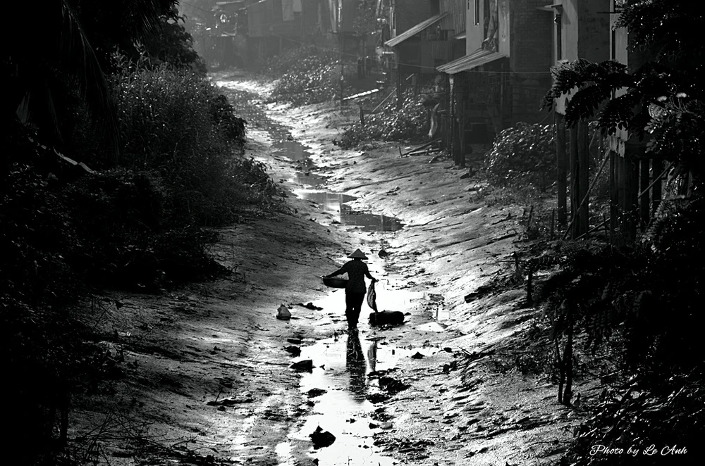Hình ảnh người phụ nữ chờ con nước ròng lặn lội bắt từng con cá con tép trong lúc nhiều người còn say ngủ thuở mới cầm máy của thầy Anh. Ảnh: NVCC.
