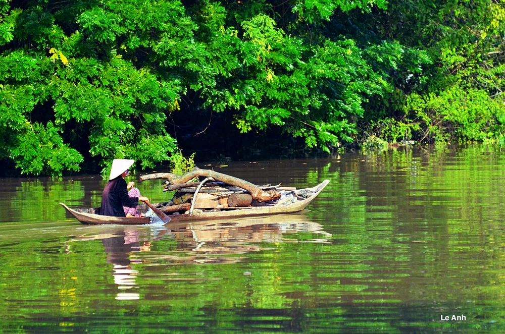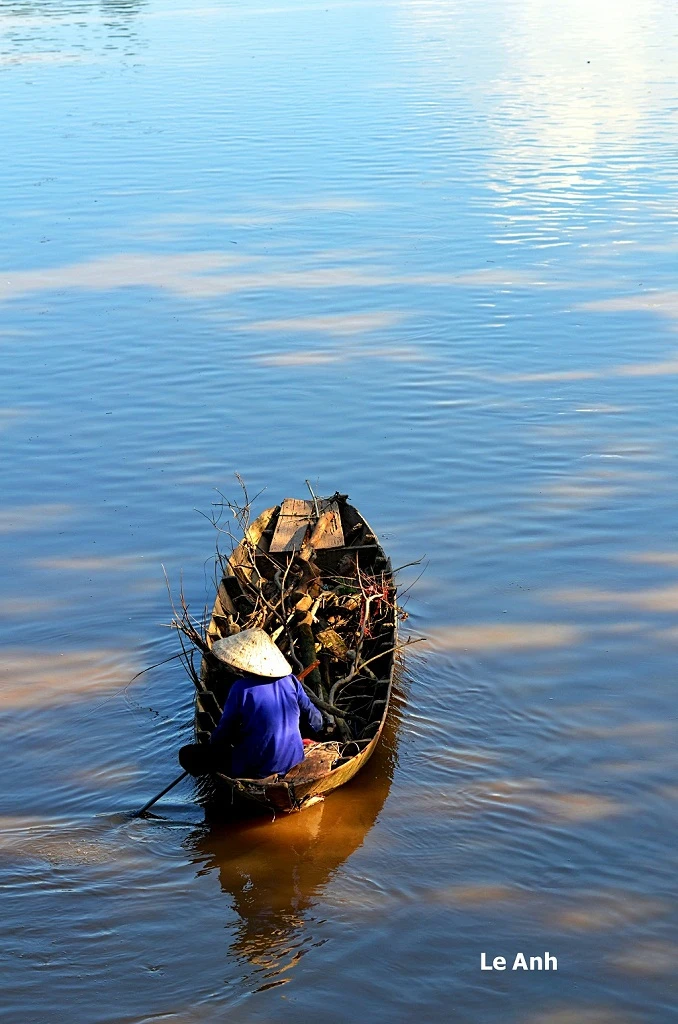 Hình ảnh người phụ nữ kiếm củi trên sông từng khiến nhiều người thổn thức vì nhớ lại hình ảnh của mẹ mình. ẢNH: NVCC.