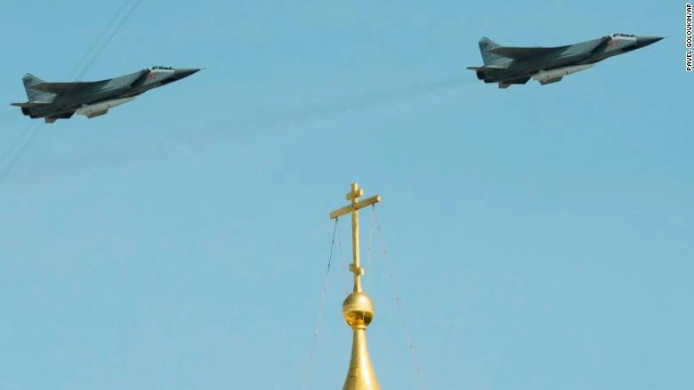 Tên lửa siêu thanh Kinzhal được gắn trên hai máy bay đánh chặn MiG-31. Ảnh: CNN
