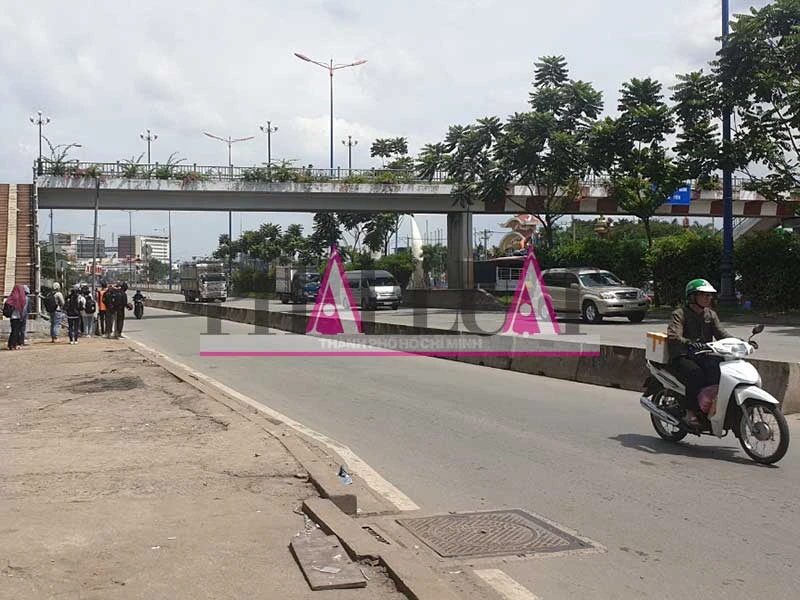 Khu vực dưới chân cầu bộ hành Suối Tiên có một cán bộ công an phường và hai bảo vệ dân phố đứng túc trực.
