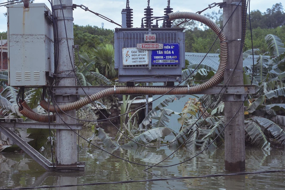 Phòng trực Dân quân cơ động cũng bị ngập sâu. Mọi cán bộ địa phương trực ban điều ở tầng 2 tòa nhà. Ảnh: N.DO