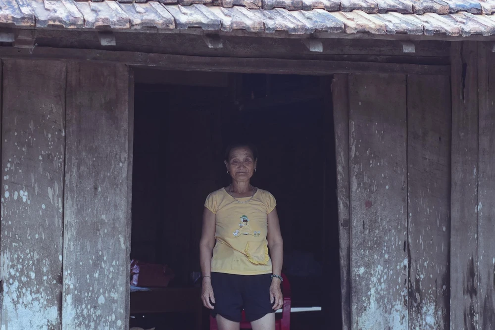Bà Nguyễn Thị Quế (70 tuổi, tại thôn 4, xã Tân Hóa) cho biết, đây là đợt lũ lớn hơn năm 2016, gần chạm mốc lũ năm 2010. Ảnh: N.DO