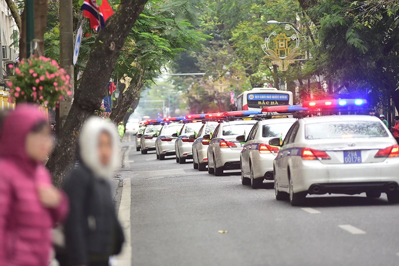 Chỉ tính riêng lực lượng cảnh sát giao thông, Công an TP Hà Nội đã huy động 100% quân số, với hơn 1.000 cán bộ chiến sĩ tham gia dẫn đoàn, phân luồng cho các đoàn đại biểu quốc tế; duy trì các tổ công tác đảm bảo an toàn giao thông tại hơn 300 nút giao trọng điểm, ngăn chặn ùn ứ từ xa.