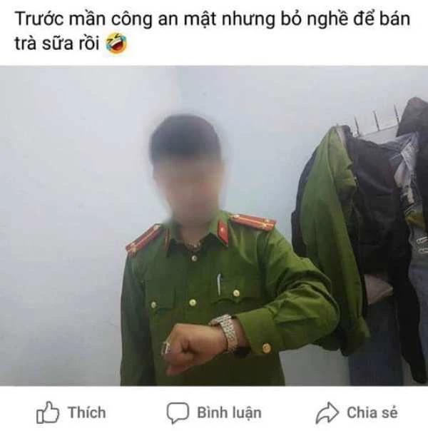 Trước đó, ngày 25-4, Q. lên trang Facebook cá nhân đăng ảnh mình mặc áo cảnh sát với cấp hàm trung úy với dòng trạng thái “Trước đây mần công an mật nhưng bỏ nghề để bán trà sữa rồi”. Sau đó, Công an huyện Nam Đàn đã xác minh, mời Q. đến làm việc.