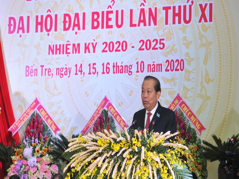 “Nhiệm vụ quan trọng Đại hội Đảng bộ tỉnh Bến Tre đặt ra trong nhiệm kỳ 2020 - 2025 rất nặng nề, nhưng cũng rất vẻ vang. Bộ Chính trị, Ban Bí thư tin tưởng rằng Đảng bộ và nhân dân tỉnh Bến Tre tiếp tục phát huy truyền thống yêu nước, cách mạng, phát động mạnh mẽ cuộc “Đồng khởi mới” trong xây dựng quê hương, tăng tốc bứt phá thực hiện các đột phá chiến lược và những nhiệm vụ trọng tâm, Bến Tre nhất định sẽ hoàn thành thắng lợi NQ Đại hội Đảng bộ tỉnh lần thứ XI”- Phó Thủ tướng Trương Hòa Bình nhấn mạnh.