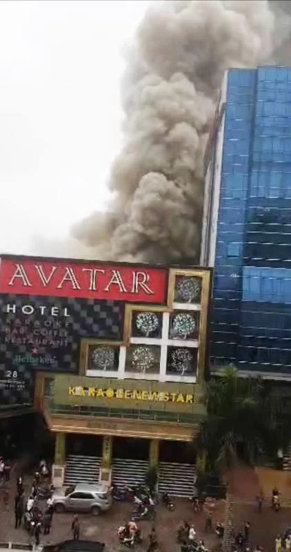Khói đang bốc lên từ Khách sạn Avatar.