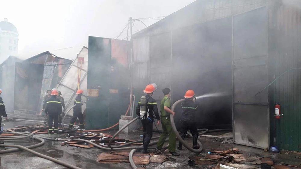 + Đến 14 giờ 50, đám cháy đã cơ bản được khống chế. Tại hiện trường, 10 xe chữa cháy đang tiếp tục phun nước tránh lửa bùng phát trở lại.