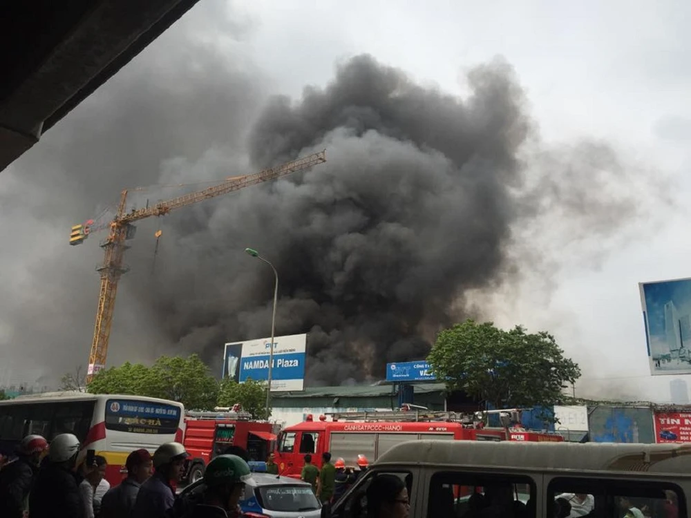 Vụ hỏa hoạn xảy ra khoảng 13 giờ 30 chiều nay (7-4), tại một kho hàng trên đường Phạm Hùng, gần tòa nhà Keangnam (Nam Từ Liêm, Hà Nội).