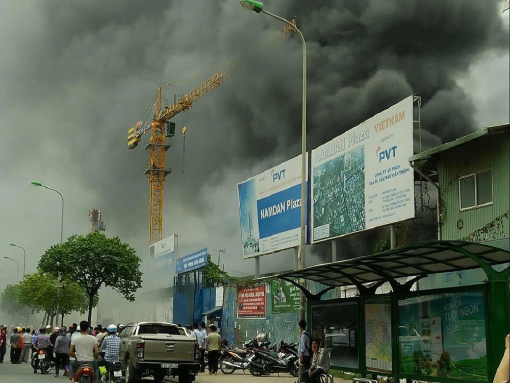 Lửa cùng khói bốc cao hàng trăm mét