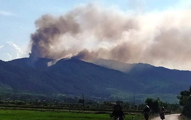 Chiều 29-6, xảy ra cháy rừng ở xã Diễn Phú (huyện Diễn Châu, Nghệ An). Ảnh: Đ.L