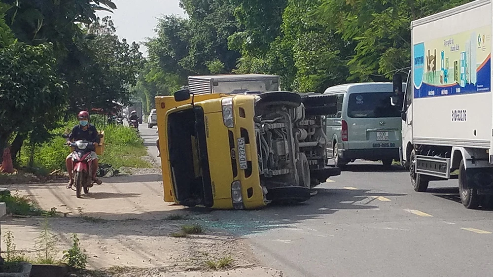 Khi xe đến khu vực ấp 4, xã Phạm Văn Hai thì bánh sau xe rơi ra ngoài. Do ở tốc độ cao, đang chở nặng nên chiếc xe mất thăng bằng lật ngang, trượt dài một đoạn rồi mới dừng lại.