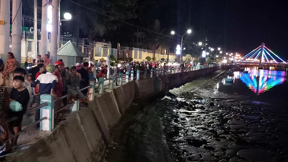 Hiện trường vụ nhảy cầu thu hút rất đông người hiếu kỳ.