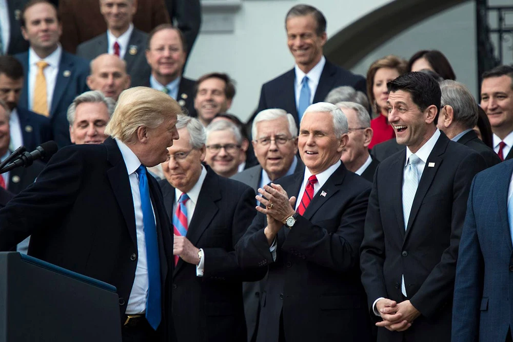 Tổng thống Donald Trump gặp gỡ các nghị sĩ đảng Cộng hòa trong một phiên làm việc tại Quốc hội hồi tháng 12-2017. Ảnh: THE WASHINGTON POST