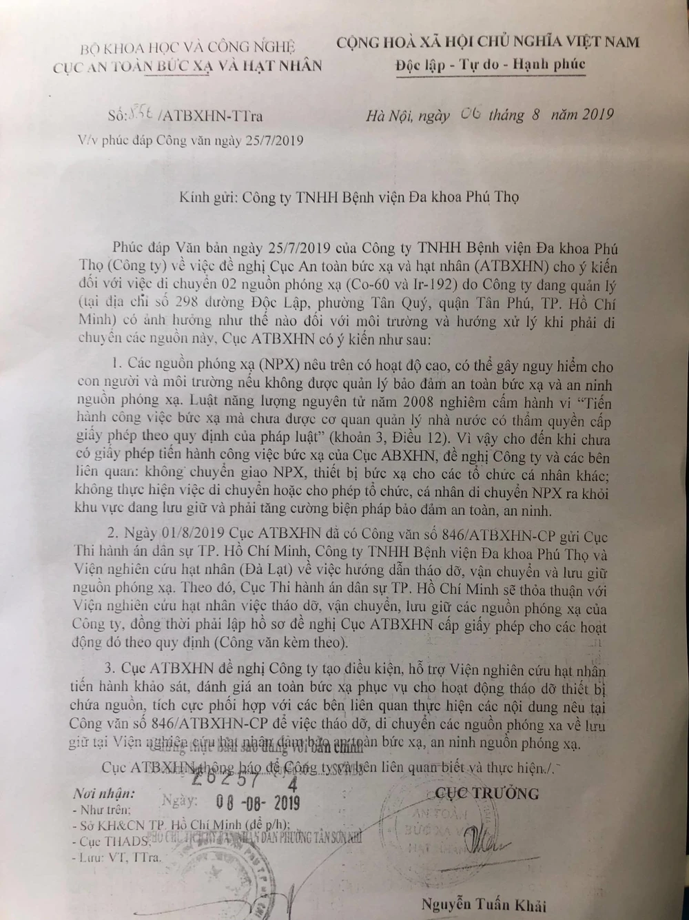 Văn bản của Cục An tòa bức xạ và Hạt nhân, Bộ Khoa học và Công nghệ