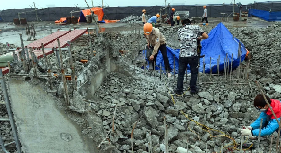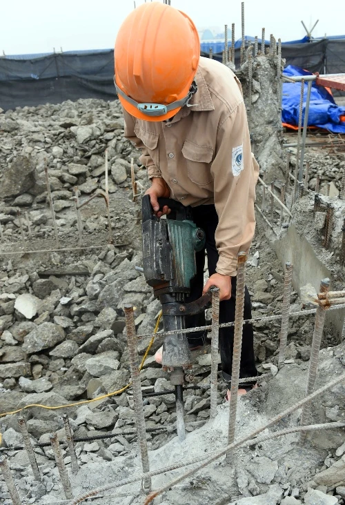Các máy khoan bê tông cỡ lớn được đưa tới để khoan sàn.