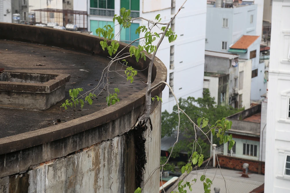 Cây xanh mọc ngay trên nóc thủy đài lâu năm bị bỏ hoang.