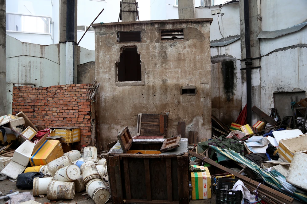 Đồ đạc và chỗ ở tạm của người dân nằm ngay trong lòng thủy đài.