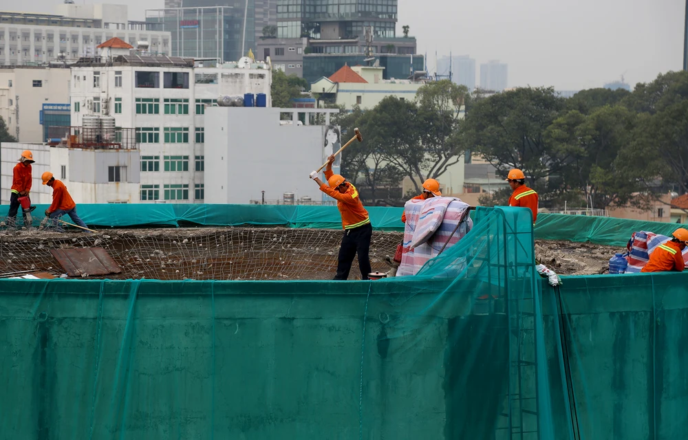Ghi nhận của PV tại thủy đài trên đường Nguyễn Văn Tráng (quận 1), hàng chục công nhân Công ty TNHH MTV công ích quận 1 đã tháo dỡ xong phần mái của thủy đài và chuẩn bị tháo dỡ phần thân.