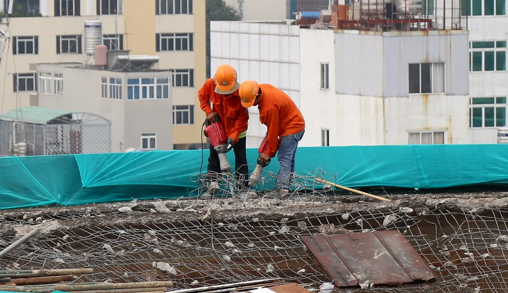 “Hơn 10 công nhân tích cực đập và khoan liên tục trong hơn 3 ngày qua mới xong phần mái thủy đài. Trong những ngày tiếp theo, chúng tôi sẽ tháo dỡ phần thân thủy đài”, một công nhân chia sẻ.