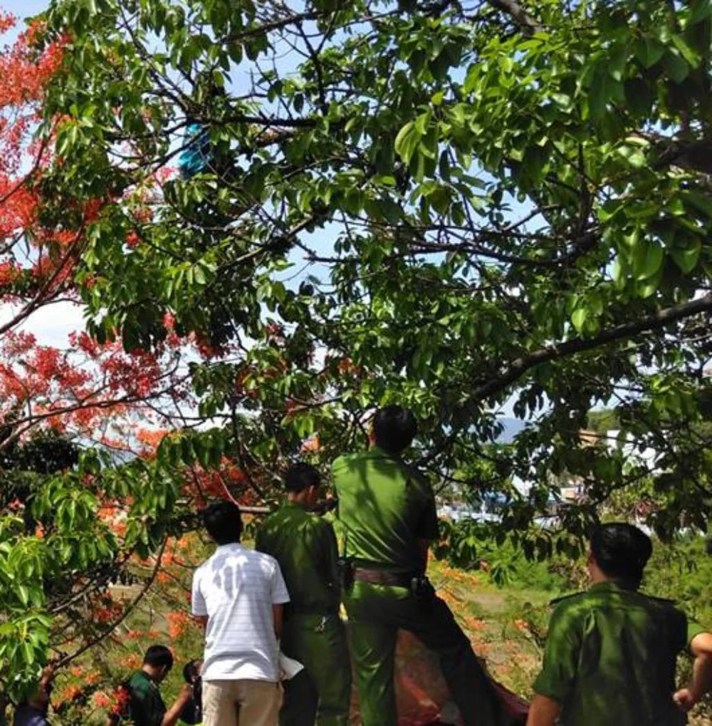 Gần một tiếng đồng hồ sau, khi thấy cô gái có biểu hiện mệt, Trung tá Đỗ Xuân Kiều, Tổ trưởng tuần tra cảnh sát 113 Công an tỉnh Khánh Hòa leo lên tiếp cận, lao ra nhánh cây giải cứu cô gái an toàn.