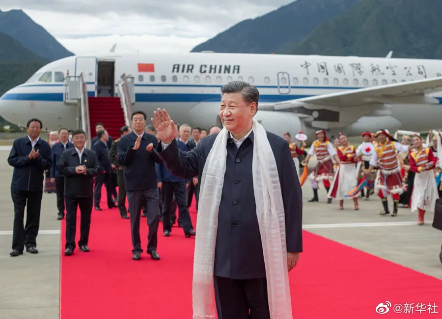 Chủ tịch Trung Quốc Tập Cận Bình đến sân bay Nyingchi Mainling (Tây Tạng) tháng 7-2021. Ảnh: TÂN HOA XÃ