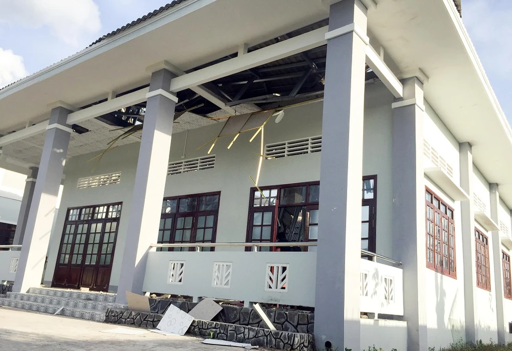 Hội trường có mái bị sập.