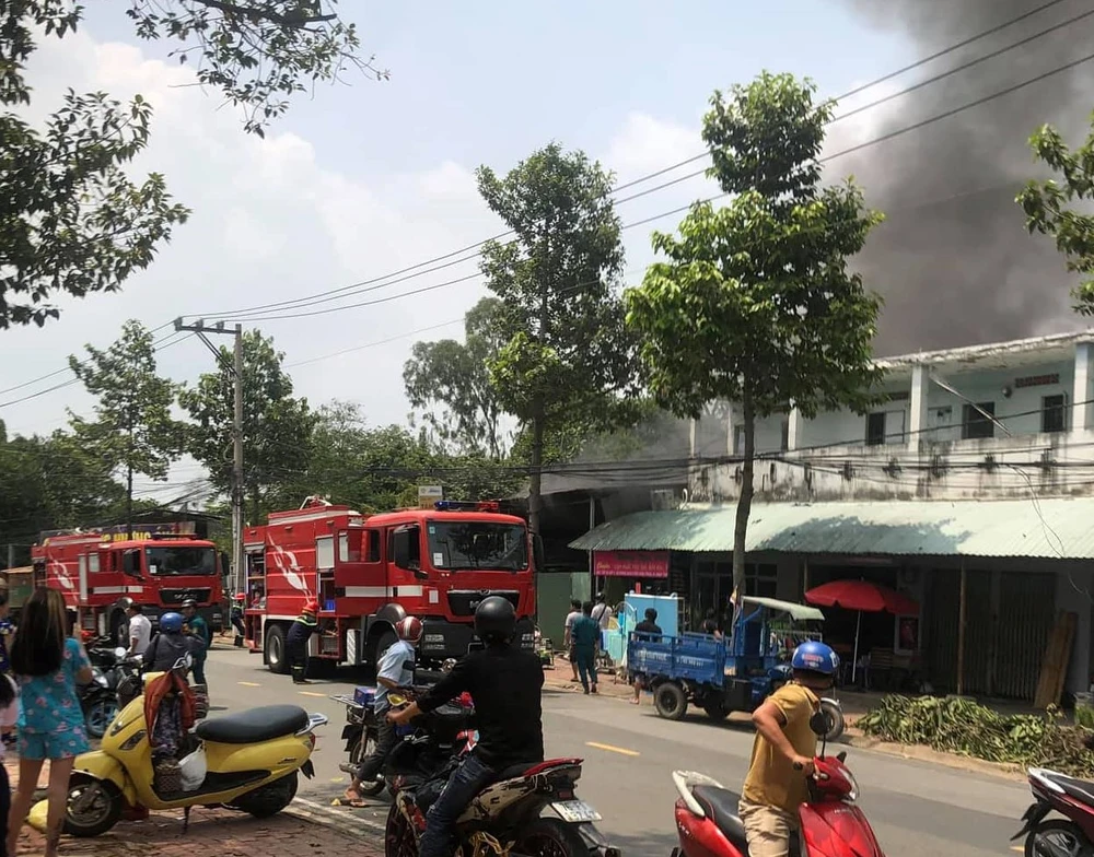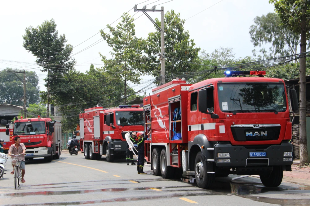 Nhận được tin báo lực lượng PCCC tỉnh Bình Dương đã huy động năm xe chữa cháy cùng nhiều cán bộ chiến sĩ đến để dập lửa.
