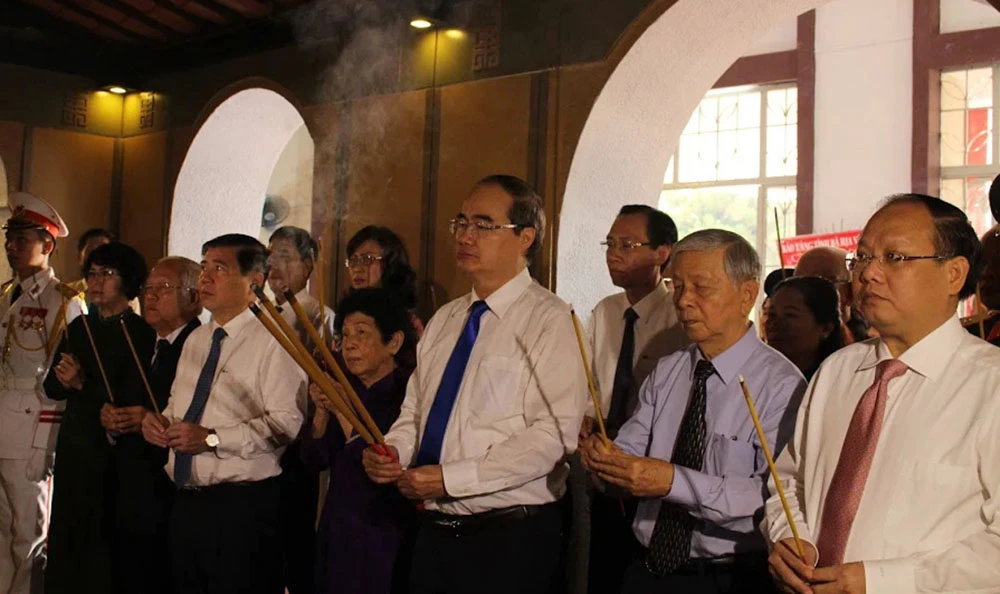 Tại Bảo tàng Tôn Đức Thắng (số 5 Tôn Đức Thắng), Đoàn đại biểu Thành ủy - HĐND - UBND - Ủy Ban MTTQ Việt Nam TP.HCM do Bí thư Thành ủy Nguyễn Thiện Nhân làm trưởng đoàn đã dâng hương, dâng hoa tưởng nhớ Chủ tịch Tôn Đức Thắng.
