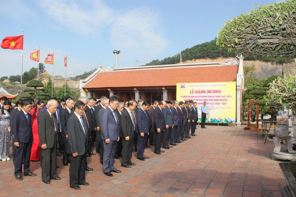 Trong không khí trang nghiêm, thành kính, lãnh đạo TKV và các đại biểu đã kính cẩn dâng hương tưởng nhớ công lao to lớn của các bậc tiền bối, những người đã khai sinh ra ngành sản xuất than Việt Nam, tưởng nhớ các anh hùng liệt sĩ, những thợ mỏ đã hy sinh vì sự nghiệp sản xuất than.