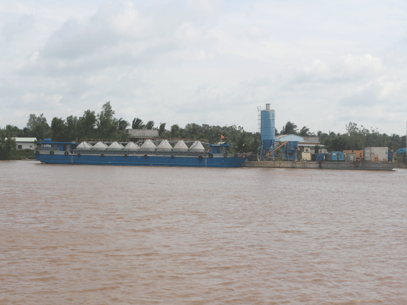 Nhiều sà lan hàng trăm tấn chở vật tư, thiết bị phục vụ sửa cống Sơn Đốc 2.