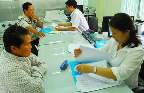 Làm thủ tục giấy tờ tại Phòng Công chứng số 7, TP.HCM. (Ảnh chụp chiều 25-2) Ảnh: HTD
