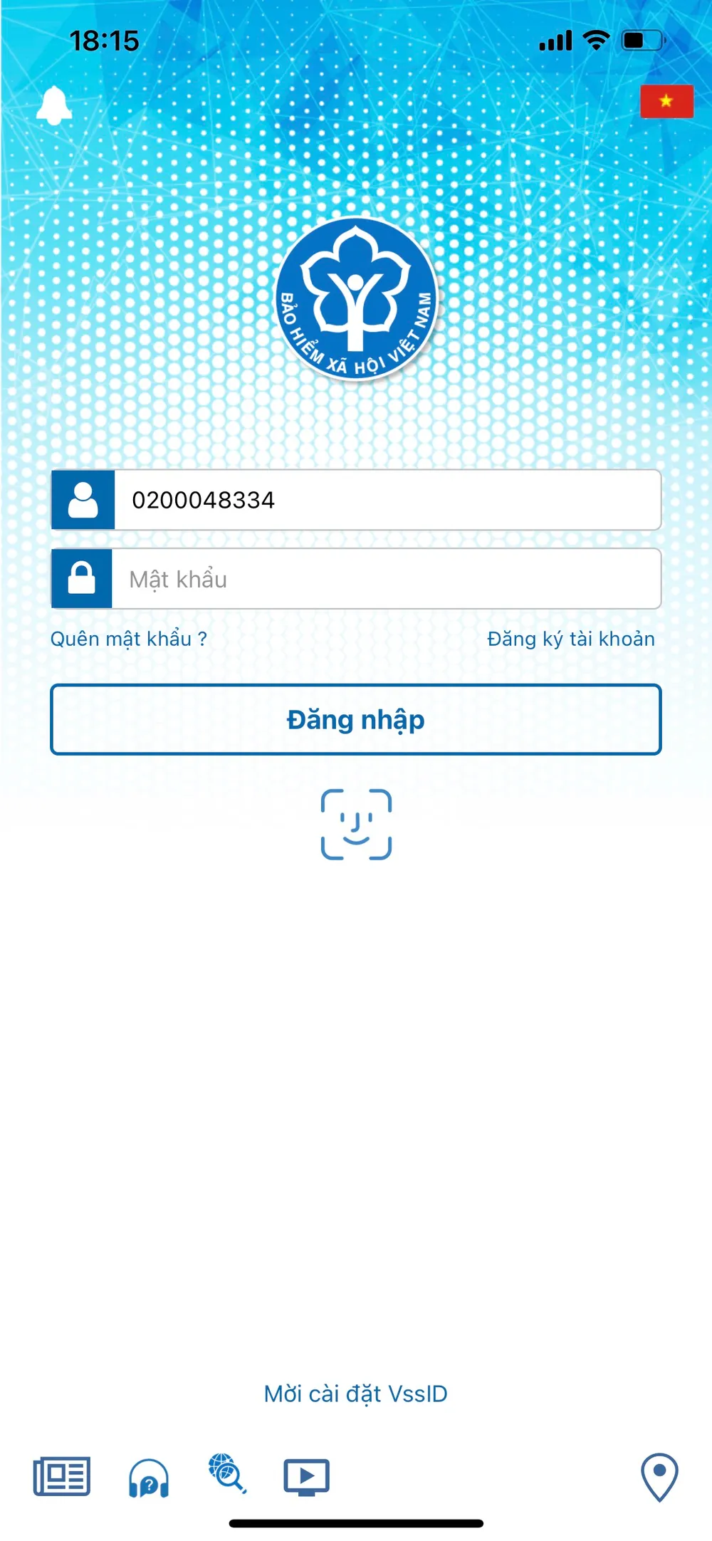 Bước 1: Đăng nhập vào ứng dụng VssID.