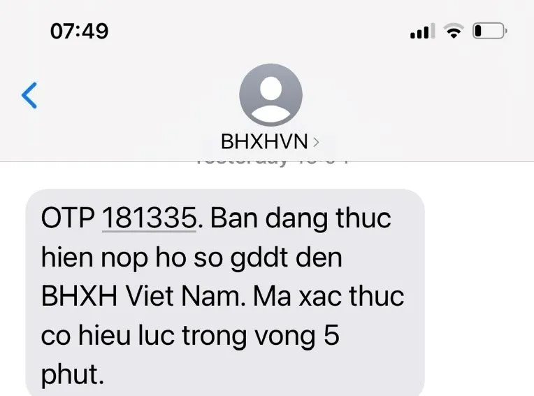 Bước 5: BHXH Việt Nam sẽ gửi mã OTP về số điện thoại của người hưởng.
