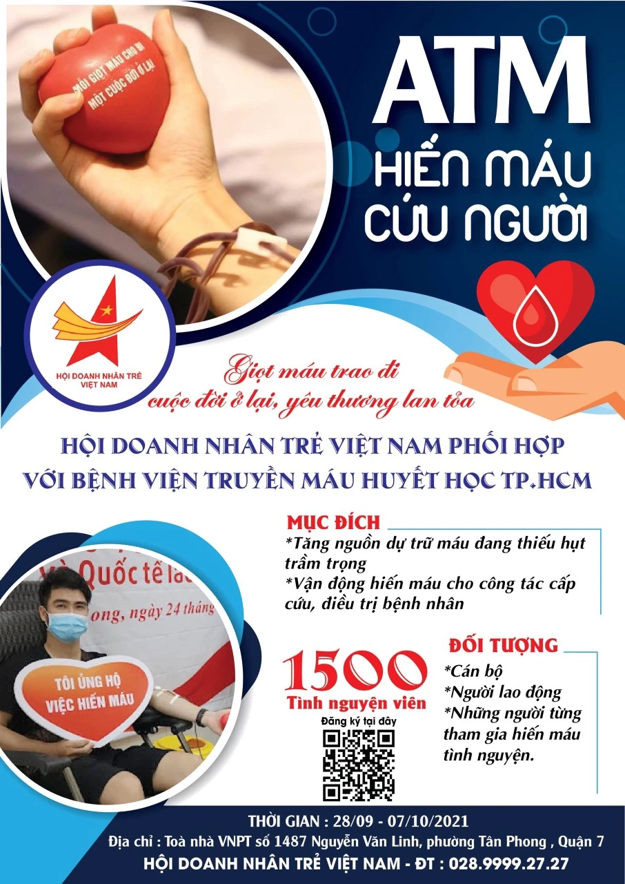 Hưởng ứng lời kêu gọi hiến máu tình nguyện của Ban Chỉ đạo Quốc gia vận động hiến máu tình nguyện, Hội Doanh nhân trẻ Việt Nam phối hợp Bệnh viện Truyền máu Huyết học TP.HCM triển khai Chương trình ATM Hiến máu cứu người với ý nghĩa “Giọt máu trao đi – Cuộc đời ở lại, yêu thương lan tỏa”.