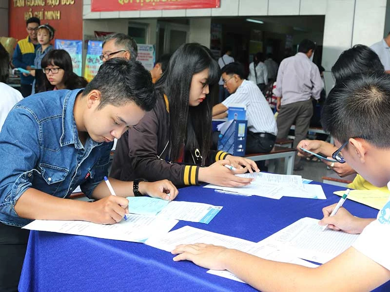 Thí sinh làm hồ sơ đăng ký xét tuyển ĐH-CĐ năm 2016. Ảnh: P.ĐIỀN