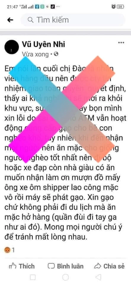 Những dòng tâm trạng này đã khiến nhiều người càng bức xúc thêm vì cho rằng đơn vị phát gạo đã có sự phân biệt, đối xử với người nhận gạo.