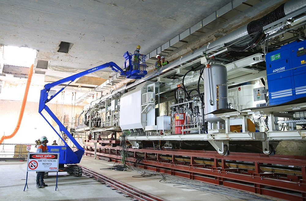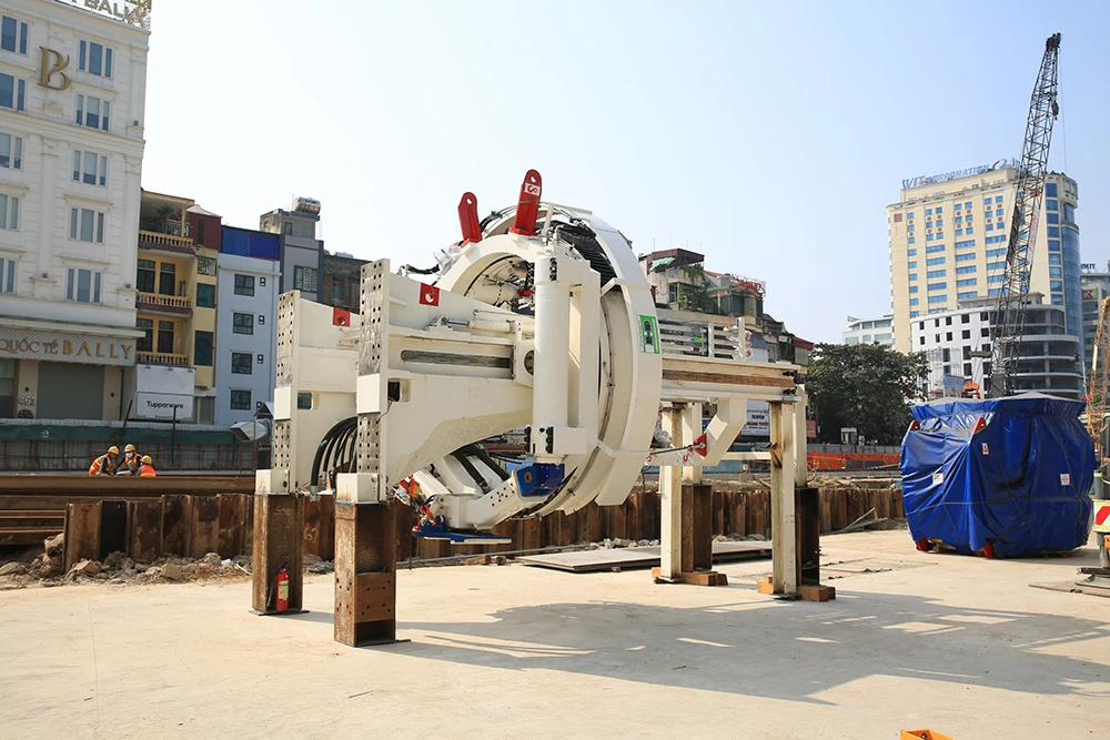 Máy đào hầm đầu tiên của tuyến Metro Nhổn - ga Hà Nội đang được lắp đặt tại ga S9.
