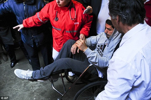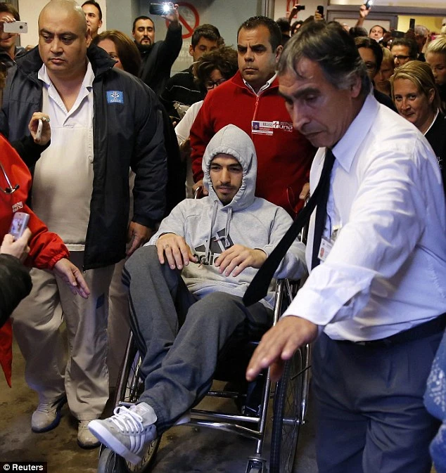 Suarez phải rời bệnh viện bằng xe lăn