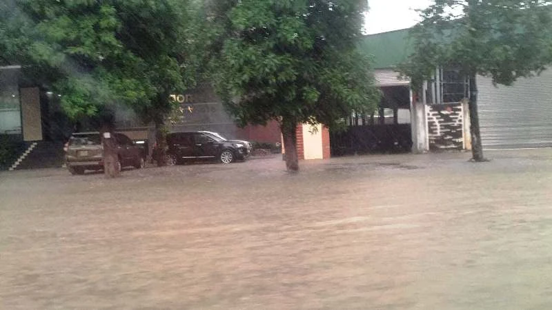 Đường ở TP Vinh biến thành sông, xe không thể lưu thông.