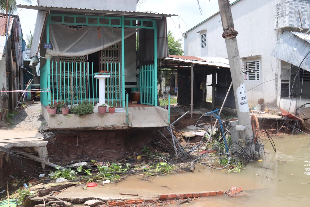 Theo ngành chức năng, khu vực sạt lở có dài 60 m, sâu vào bờ 5 m. Trong số 11 căn nhà có nhiều căn nhà bị sụp đổ hoàn toàn, một trụ điện bị rơi xuống sông.