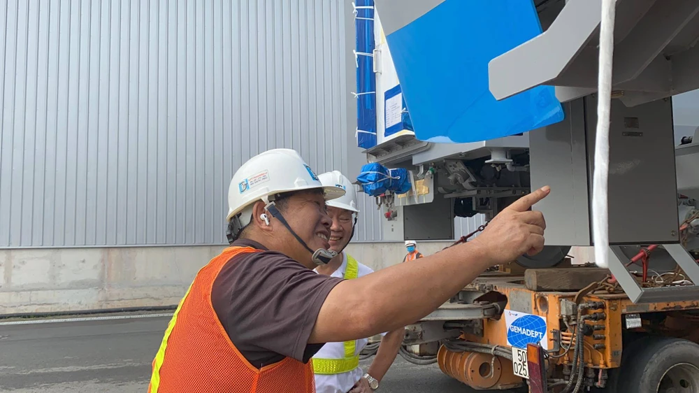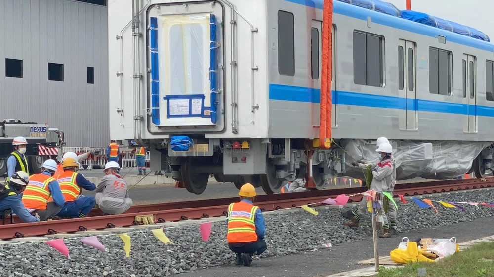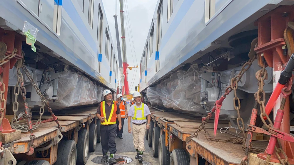 Ông Hoàng Mai Tùng, Điều phối viên Ban Quản lý Đường sắt Đô thị TP.HCM, cho biết quy trình dỡ tải đoàn tàu tại khu vực Depot và quy trình kết nối các toa tàu được thực hiện như sau: Đầu tiên, nhà thầu chính Hitachi và các nhà thầu phụ tiến hành kiểm tra an toàn theo đúng quy định.