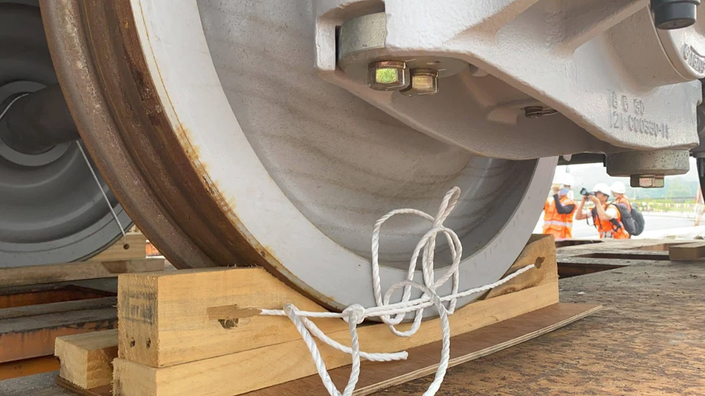 Sau đó, Công ty vận chuyển Gemadept đưa rơ-móoc vào vị trí để dỡ tải và khu vực này phải được rào lại bằng cọc tiêu an toàn và chóp nón. Đơn vị này sẽ tháo các vật tư chằng buộc và thầu chính, thầu phụ lắp các dây cáp vào chốt nâng hạ, dây dẫn vào các bệ gá vận tải bên dưới đầu máy toa xe. Sau đó, nhà thầu chính tiến hành kiểm tra tình trạng bố trí dây cáp, kiểm tra tình trạng cân bằng nâng hạ.