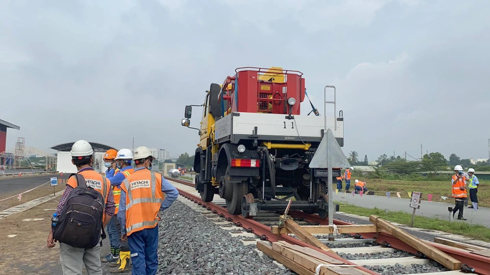 Thiết bị chạy thử ở ray tàu trước khi đưa tàu metro số 1 vào chạy thử chính thức.