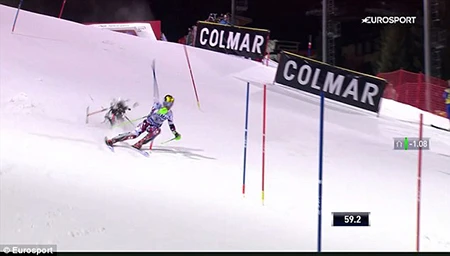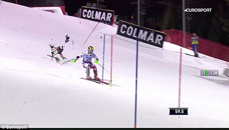 Chiếc máy bay (camera drone) rơi cách Hirscher chỉ khoảng 1 m