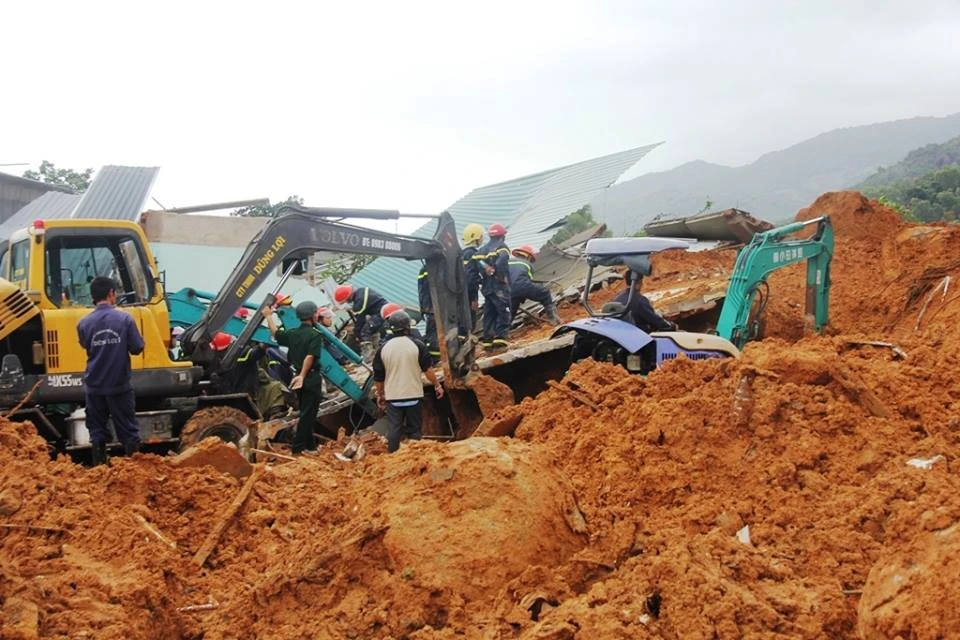Hai người chưa tìm thấy đó là bà Phạm Thị Hoa (43 tuổi) và con trai là Phạm Cao Sang (18 tuổi). “Do khối lượng đất đá sạt xuống quá lớn, làm nhiều tường nhà bê tông vỡ nát lẫn trong bùn đất nên việc tìm kiếm rất khó khăn. Tất cả đang chạy đua để cứu hai người còn mắc kẹt” - ông Hưởng nói.
